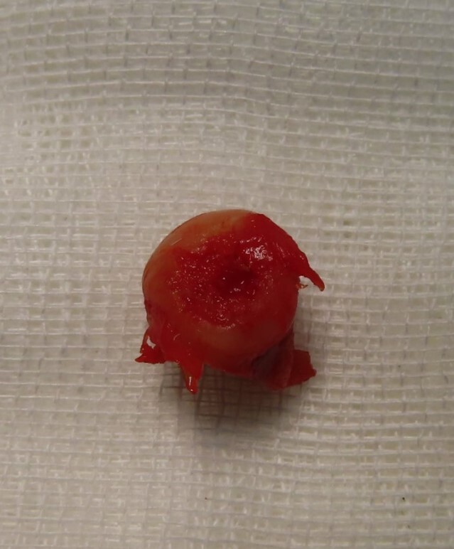 수술 후 매끄럽고 균질해야 할 골두 표면이 움푹