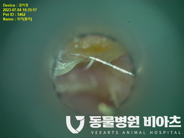 검사를 위해 귀에서 나온 분비물을 채취하였습니다.