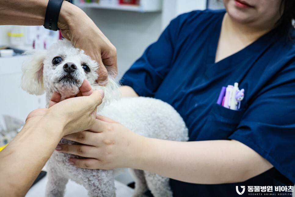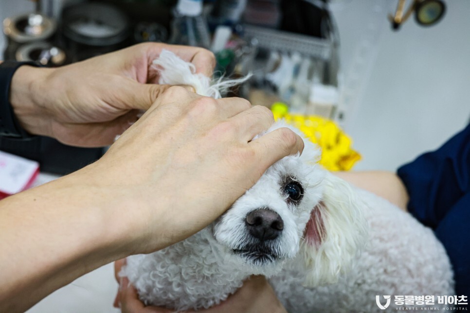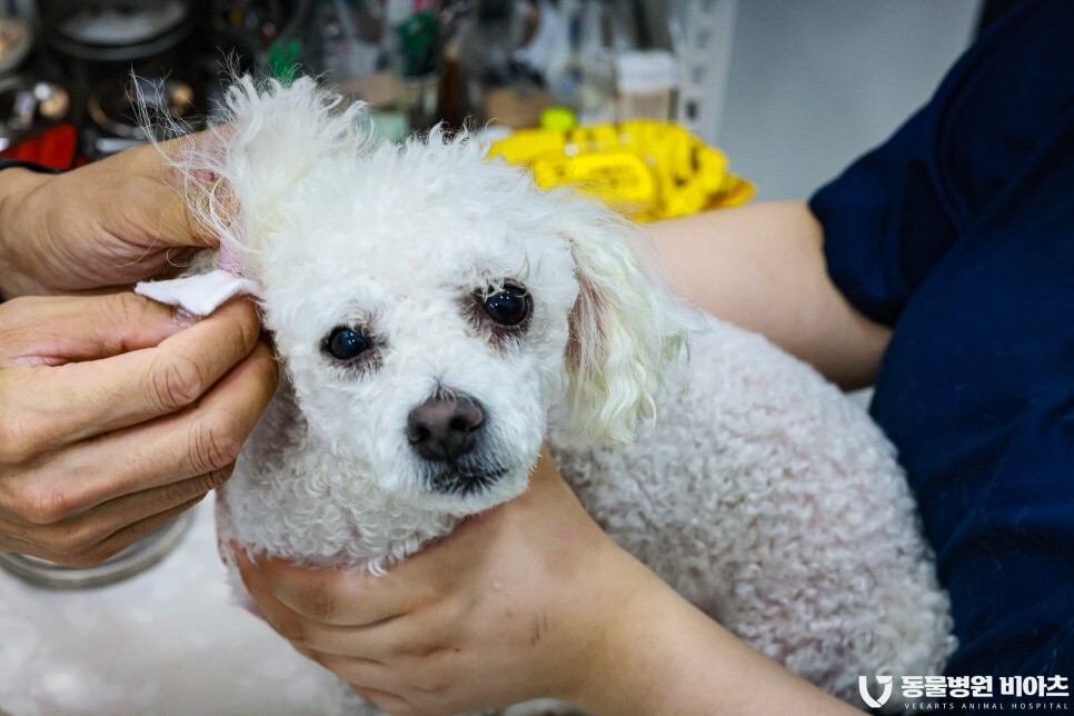 귀 세척을 마치고 잠시 보호자 품으로 돌아가