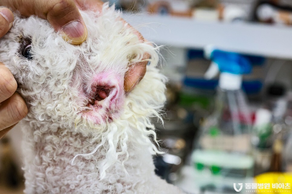 얼마 전 미용하는데 귀가 좀 부어 있고