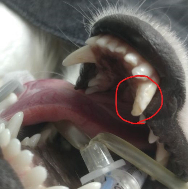 강아지 법랑질 결손 송곳니가 깨진 것 같다고 내원하셨습니다.