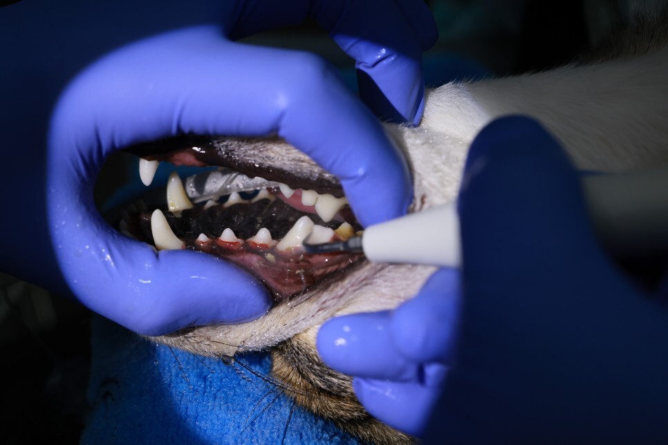 하지만 구강 방사선 촬영은 센서를 입안에 넣고 촬영 해야 하기 때문에 동물들은 마취가 필요합니다. 또한, 동물은 통증 부위를 구체적으로 표현할 수 없기 때문에 숨어 있는 병변을 찾으려면 구강 방사선 촬영이 필요합니다. 숨어 있는 병변을 놓칠 경우 스케일링 후 짧으면 몇 주에서 몇 달 이내에 예전 증상이 다시 나타날 수 있습니다.