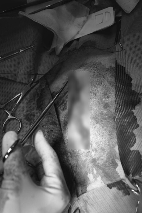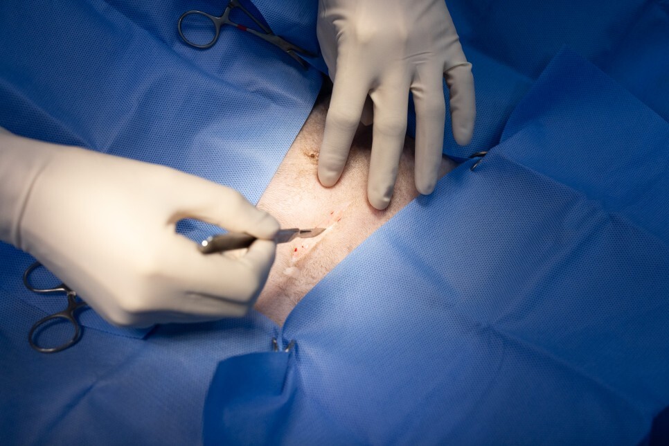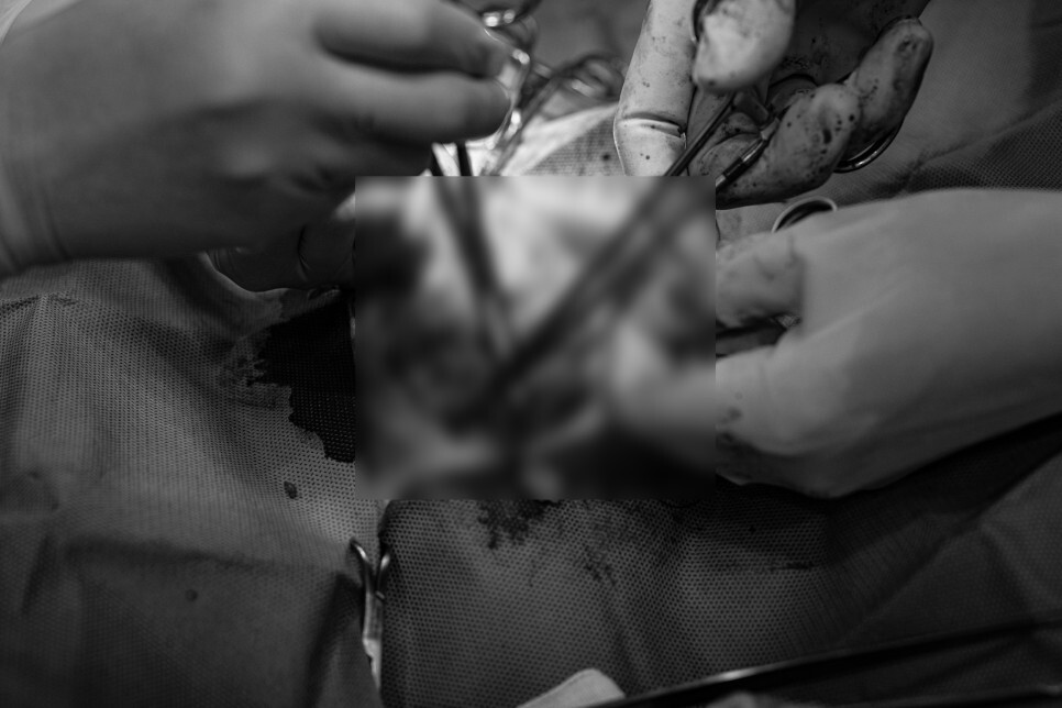 정확한 위치를 잡고 개복을 합니다.