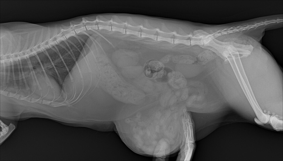 정확한 상태를 파악하기 위해서 엑스레이와 복부 초음파 검사를 하였습니다.