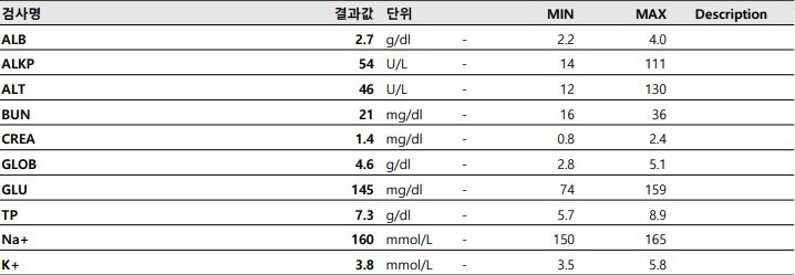 식욕도 좋고 활발하고 어디 불편해하는 곳도 없는 임상 증상이 전혀 없는 상태였습니다.